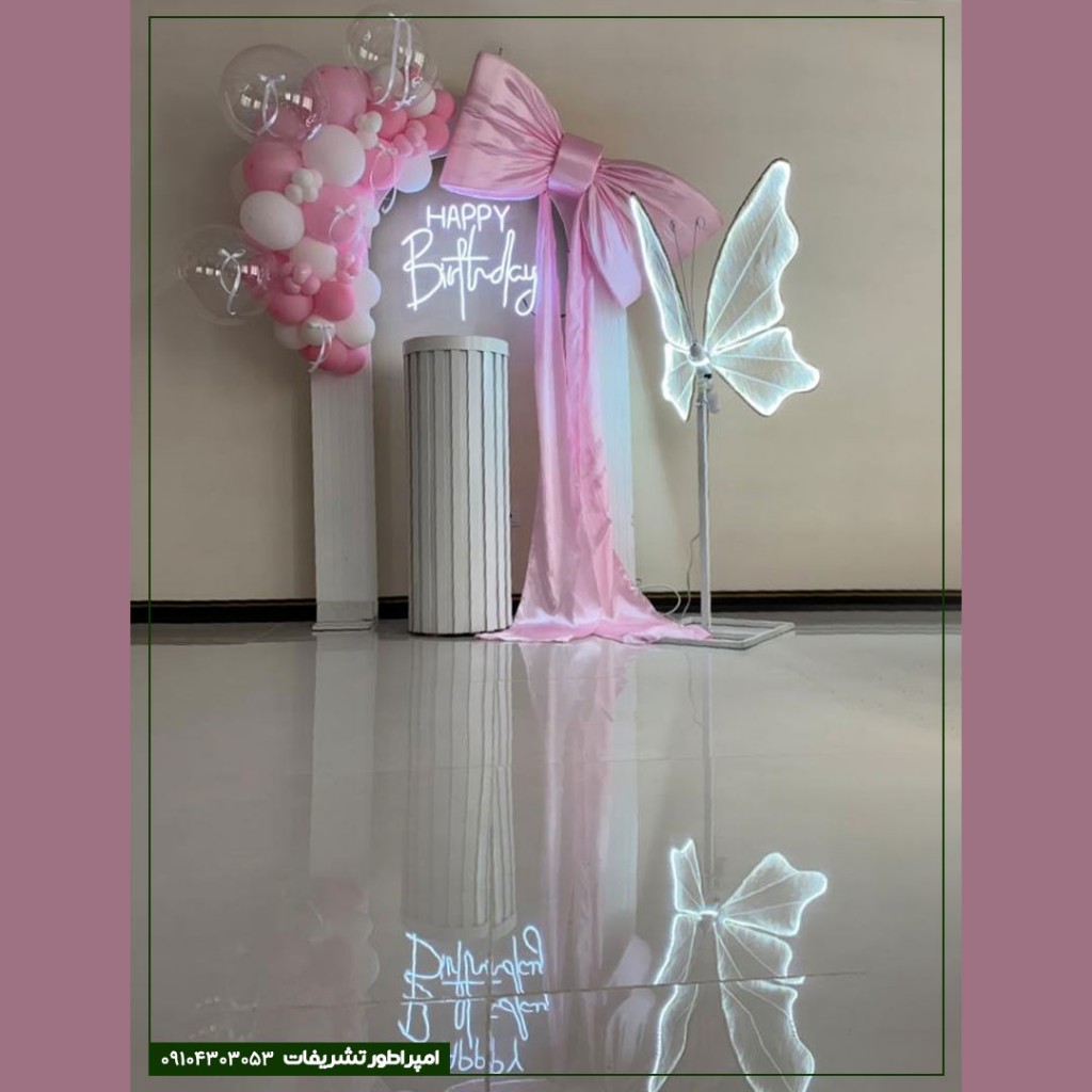 - ستاره پکیج: یک پاپیون صورتی ساتن غولپیکر (۶۰ سانتیمتر) – نقطه کانونی اینستاگرامی!