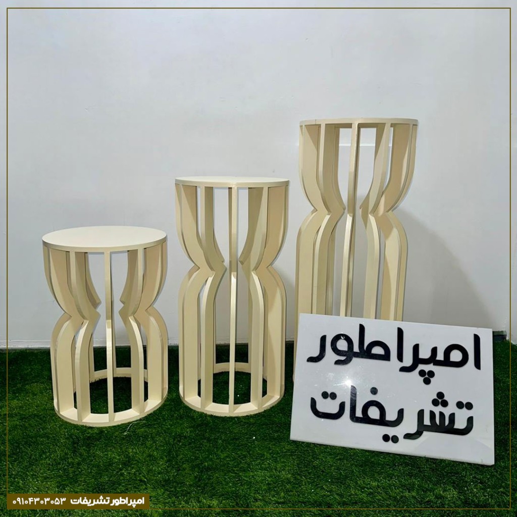 سه تا میز پروانه ای فلزی ظریف و فوقالعاده زیبا با ارتفاع ۱۰۰، ۸۰ و ۶۰ سانتیمتر که انگار همین الان از قصههای پریان پرواز کردن اومدن وسط سالن شما! بالهای بزرگ و براقشون جای عالی برای آویزون کردن بادکنکهای هلیومی، مککوئین، فویلی 숫ری یا حتی اسم کودک.