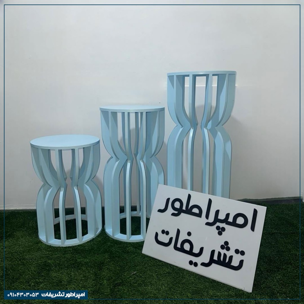 سه تا میز پروانه ای فلزی ظریف و فوقالعاده زیبا با ارتفاع ۱۰۰، ۸۰ و ۶۰ سانتیمتر که انگار همین الان از قصههای پریان پرواز کردن اومدن وسط سالن شما! بالهای بزرگ و براقشون جای عالی برای آویزون کردن بادکنکهای هلیومی، مککوئین، فویلی 숫ری یا حتی اسم کودک.