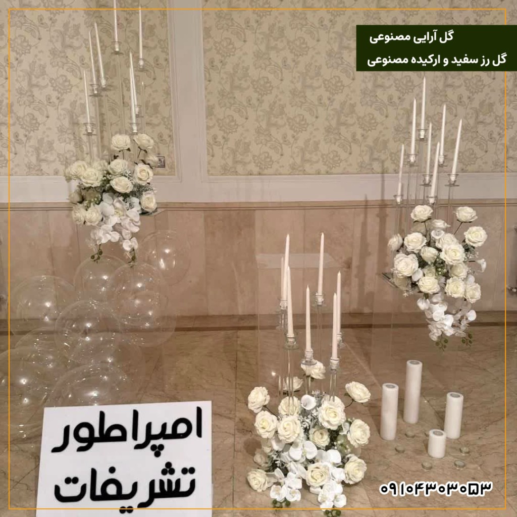 گل آرایی مصنوعی گل رز سفید و ارکیده مصنوعی