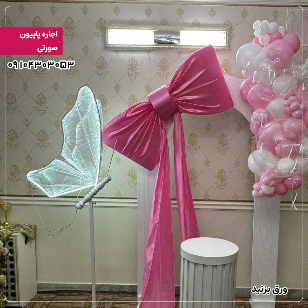 پاپیون یکی از ترندترین آیتمهای دکور تولد و مراسم در سالهای اخیر است که جلوه بکگراند را چند برابر میکند و فضای مراسم را خاصتر و حرفهایتر نشان میدهد.