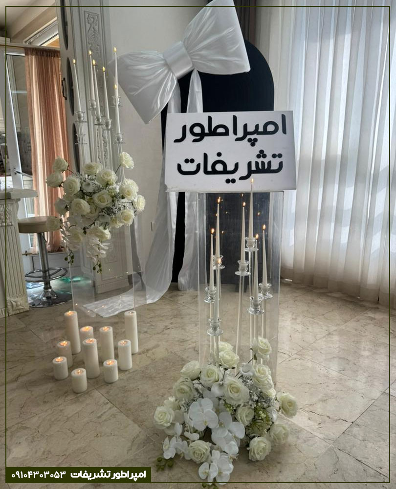 - دکور: شمعدانهای طلایی، رومیزیهای مخملی شرابی، و آینههای تزئینی.